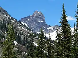 Cutthroat Peak is an 8,050-foot-elevation (2,450-meter) granitic mountain located on the boundary of Chelan County and Skagit County, in Washington state.[4] The mountain is part of the Okanagan Range which is a subset of the Cascade Range, and is situated within the Okanogan-Wenatchee National Forest. Cutthroat Peak is about two miles west of Washington Pass and one mile east of Rainy Pass. It's a prominent landmark along the North Cascades Highway with an accessible climbing route (South Buttress class 5.8). There is also a Cutthroat Lake, Cutthroat Creek, and Cutthroat Pass on its north and east aspects. This geographical feature's name was officially adopted in 1988 by the United States Board on Geographic Names.[4] Molar Tooth is a granite pillar half a mile north on the ridge extending to Cutthroat Pass.