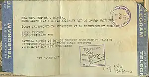 Hoax telegram sent to Peter Fenton 14 April 1963