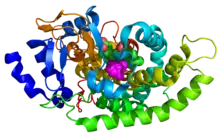 7. Hasemann CA, Kurumbail RG, Boddupalli SS, Peterson JA, Deisenhofer J (January 1995). "Structure and function of cytochromes P450: a comparative analysis of three crystal structures". Structure. 3 (1): 41–62. doi:10.1016/s0969-2126(01)00134-4. PMID 7743131.