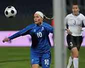Dóra María Lárusdóttir (born 24 July 1985) is an Icelandic former football player who predominantly played as a winger for Icelandic club Valur. Having played for Valur for a decade and been voted national Player of the Year in 2008 and 2010, Dóra María was for many years one of Iceland's leading female footballers. During her career, she won the Icelandic championship eight times and the Icelandic Cup five times. From 2003 to 2017, Dóra María was part of the Iceland women's national team and she participated at the 2009 and 2013 editions of the UEFA Women's Championship.[1]