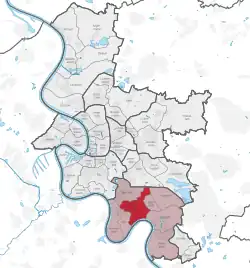 Holthausen is an urban quarter of Düsseldorf, part of Borough 9. It is located south of Oberbilk, west of Reisholz, north of Benrath and east of Itter and Himmelgeist. A natural border is the river Rhine. It has an area of 5.35 km2 (2.07 sq mi),[2] and 12,775 inhabitants (2020).[1]