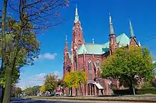 After the Third Partition of Poland (1795) Dąbrowa was annexed by Prussia and incorporated into its newly formed province of New Silesia. The Prussians discovered rich deposits of coal here and the first coal mine was established by Friedrich Wilhelm von Reden in 1796. In 1799, first detailed map of this area was created, on which a settlement called Stara Dąbrowa is presented. It was located along a road from Kraków to Upper Silesia. The coal mine, established by Friedrich Reden, attracted workers, and a settlement was soon established around it. In 1807, Dąbrowa was regained by Poles and included within the short-lived Polish Duchy of Warsaw, and in 1815, after the duchy's dissolution, it became part of Russian-controlled Congress Poland. In 1846, the Cieszkowski Coal Mine was opened, named after Józef Cieszkowski. The Zinc Plant Konstanty operated as early as 1823, and the Huta Bankowa steel works, which is still in operation, was built in Dąbrowa Górnicza in 1834. First primary school was opened in 1820, and first Roman Catholic church of St. Alexander was built in the 1870s. During the January Uprising, in February 1863, Dąbrowa was captured by Polish insurgents after their victory in the Battle of Sosnowiec nearby.[4] In 1909 the gmina of Dąbrowa Górnicza was established by Tsarist authorities. Even though its population reached 30,000, the Russians were reluctant to grant Dąbrowa town charter, so it remained a village until 18 August 1916, when Austrian authorities, which during World War I occupied southern part of Congress Poland, agreed to establish the town. After the war, in 1918, Poland regained independence and control of the city. 15 local Polish boy scouts were killed in fights for Polish independence in 1914–1920.[5] In the Second Polish Republic, Dąbrowa belonged to Kielce Voivodeship.
