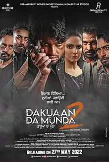 Dakuaan Da Munda 2 (English: The Bandits’ Son 2)[1] is a 2022 Indian Punjabi autobiographical film based on the life of a drug addict Manga Singh Antal. The film is an adaptation of a Punjabi book named Shararti Tatt, which narrates the life and hardships faced by Manga Singh Antal.[2] The film is directed by Mandeep Benipal under the banner of Dream Reality Movies. The film is produced by Ravneet Kaur Chahal, Rajesh Kumar Arora and Ashu Munish Sahni. The film features Dev Kharoud, Japji Khaira, Nishawn Bhullar, Raj Singh Jhinger in lead characters along with Lucky Dhaliwal and Karanveer Khullar. The film is a sequel to 2018 film Dakuan Da Munda. The film was released worldwide in cinemas on 27 May 2022.[3]