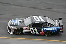 Before the 01 car ran under the DEI banner, the team ran as MB2 Motorsports, with their cars driven by drivers such as Ernie Irvan, Ken Schrader, and Joe Nemechek. Veteran Mark Martin, coming off his final year with Roush Racing, was signed to drive MB2's No. 01 car for 20 races (18 points races plus the Budweiser Shootout and Nextel All-Star Challenge) in 2007, with Joe Nemechek moving over from the 01 team to the team's new 13 team. Regan Smith was pinned to fill the remaining 18 races of the season, while driving in the Busch Series for the team as well. MB2 Motorsports also changed its name to Ginn Racing to reflect Bobby Ginn's new majority interest in the team.[3] Martin was leading in the final turn of the season-opening Daytona 500, after lining up on the final restart with former Roush teammates Greg Biffle and Matt Kenseth behind him. Coming down the front stretch, and with the field wrecking behind him, Martin looked to have finally come through at Daytona. But the caution was not called, and Kevin Harvick caught Martin on his outside, beating him to the line by two-hundredths of a second.[4] Martin put together more strong finishes, and after the fourth race at Atlanta was leading the points standings in what was supposed to be his first season of semi-retirement. Resisting the chance to capture his first championship, Martin did step out of the car as scheduled, breaking a streak of 621 consecutive starts.[5] In 24 starts for the team, Martin scored 11 top 10s, and finished 27th in points despite missing 12 races.