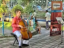 ![]() Dale Henderson, playing for Bach in the Subways in Kolkata, 2018 | |