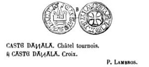 - ↑ Bon, Antoine (1969). La Morée franque: recherches historiques, topographiques et archéologiques sur la principauté d'Achaïe (1205-1430). E. de Boccard. pp. 252, 708.