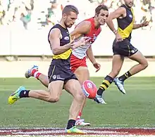 Butler kicks in front of Sydney's Josh Kennedy in round 13, 2017