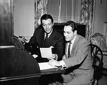 Robert Taylor and Dan Seymour work on the television and radio program We, the People, 1950