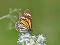 It ranges from Assam in eastern India through South-East Asia south to Indonesia, and eastwards to the Philippines and through southern China to Taiwan.[1][2] It has around 17 subspecies, and its closest relative is the Malay tiger, Danaus affinis.[2]
