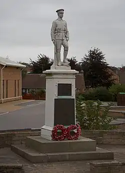 The war memorial was unveiled on 11 August 1922. It features the names of local residents who died during the First World War.[2] The memorial was later renovated following World War II.[3]