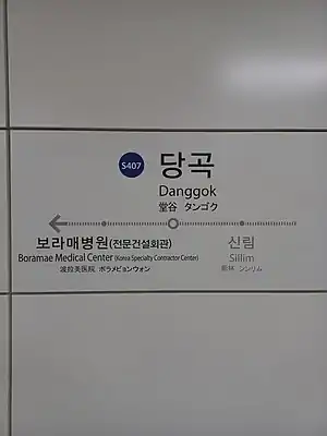 Danggok Station is a station on the Sillim Line. It is located in Bongcheon-dong, Gwanak-gu, Seoul.