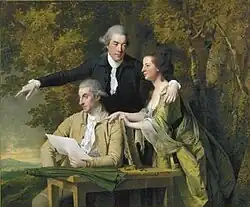 Daniel Coke, with his very distant cousin the Rev. D'Ewes Coke (standing) and his cousin's wife, by Joseph Wright, 1782