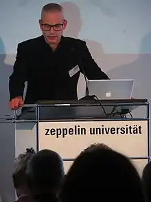 Additionally, he is Senior Advisor of the World Future Council,[5] Member of the German Association Club of Rome,[6] Member of the Federation of German Scientists VDW, Ambassador of the Association for the Promotion of the Economy for the Common Good / (Gemeinwohloekonomie),[7] and Member of the Scientific Committee of Consorzio Costellazione Apulia.[8] In the exhibition sector, he holds since 2010 the Chair of the Jury at Internorga Trade Fair at Hamburg Messe und Congress HMC. In 2019 he was one of the initial signatories of Scientists for Future, and since then member of their advisory board.