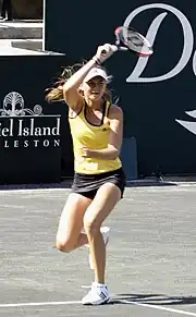 She started the year at the Medibank International in Sydney. She defeated Dinara Safina in the first round, before losing to world No. 12, Czech Nicole Vaidišová, in the second round. At the Australian Open, Hantuchová reached her first Grand Slam semifinal.[27] She won her first three matches without losing a set. In the quarterfinals, she beat Polish teenager Agnieszka Radwańska, who had defeated second-seeded Svetlana Kuznetsova and Nadia Petrova in earlier rounds. Hantuchová then lost to Ana Ivanovic in the semifinals, despite Hantuchová having won the first set 6–0, and leading the second set 2–0. After the match, Hantuchová claimed that Ivanovic had been distracting her by squeaking her shoes on the court before serving, a claim Ivanovic disputed.[28] Hantuchová's performance at this tournament caused her ranking to improve one spot to world No. 8.