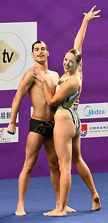 ![]() Danielle Kettlewell and her Mixed Duet partner Ethan Calleja at the 2019 FINA World Series - China Open | |