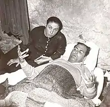 Subsequently, he started a campaign for a dam in the Belice river, to avoid the valley from becoming a wasteland and providing jobs to stop the emigration of workers.[14] Dolci proclaimed a week of mourning and with 30 associates conducted a hunger strike in the town square of Roccamena in March 1965. He then led a delegation from mayors of 19 towns in the valley to Rome to plead for the dam, parading to Parliament carrying banners protesting that "the Belice valley is dying".[15] In January 1968, the area was hit by an earthquake which destroyed much of the Belice valley. Dolci actively assisted victims and months after the disaster he announced demonstrations and hunger strikes to demand immediate help for homeless families living in tents.[16] Funds for relief and reconstruction were siphoned off by greedy administrators, and "Belice" has since become an Italian by-word for political corruption.[17]