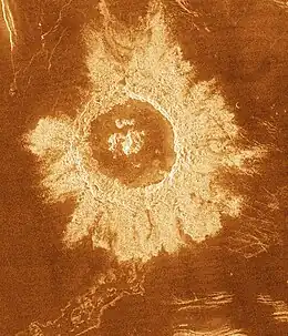 Danilova crater as seen by the NASA Magellan spacecraft.