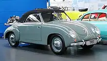 Dannenhauer & Stauss was founded by Gottfried Dannenhauer, a German coachbuilder. He had been employed by Karosseriewerk Reutter based in Stuttgart. Whilst there, he was communicating with Volkswagen before World War II. From 1950 to 1957 Reutter manufactured about 100 convertibles, mostly based on the Volkswagen Beetle. The sales price was 8,892 DM. The body was handmade by tapping metal sheets on a template. The doors were made in a pressing shop. Other companies like DKW were supplied. When in 1955 the Karmann Ghia was mass-produced, the company could no longer compete, and its product was discontinued. The amount of production was limited, but precise numbers are uncertain.[1] Changing their business model to rebuilding vehicle bodies allowed the company to survive at the address in Augustenstraße, Stuttgart where Reutter had been.