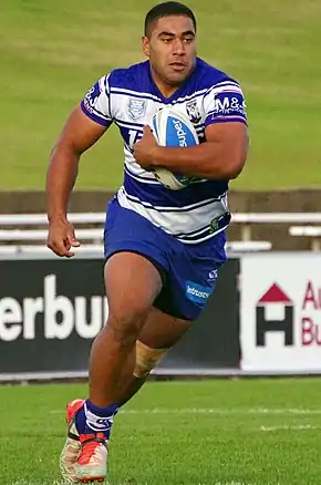 In 2015, Fualalo moved on to the Bulldogs' New South Wales Cup team.[5] In Round 7 of the 2015 NRL season, he made his NRL debut for the Bulldogs against the Manly Warringah Sea Eagles.[6][7] On 3 May, he played for the New South Wales Residents against the Queensland Residents.[8] On 11 September, he was named in the 58-man Tonga squad to play the Cook Islands on 17 October.[9]