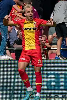 On 7 May 2023, he made his league debut for Go Ahead Eagles in the Eredivisie against FC Groningen.[7] On 21 May 2023, he scored his first senior league goal, for Go Ahead Eagles at the Adelaarshorst Stadion against FC Volendam.[8][9]