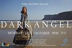 Dark Angel is a British three-part television drama miniseries, based on the adaptation of the book Mary Ann Cotton: Britain's First Female Serial Killer by David Wilson.[1] The series was broadcast on 31 October and 7 November 2016, and starred Joanne Froggatt as protagonist Mary Ann Cotton, widely regarded as Britain's first known female serial killer, who was found guilty of murder in March 1873 for the murder of three of her husbands, allegedly in order to collect on their insurance policies.[2] The series was produced by World Productions and distributed by Endemol Shine.[3][4]