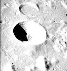 Darney is a small lunar impact crater that is located on the region of the Moon where the Mare Nubium joins the Oceanus Procellarum. It was named after French astronomer Maurice Darney.[1] To the south is the lava-flooded crater Lubiniezky. The southern rim of Darney is attached to a series of low ridges that extend to the southwest.