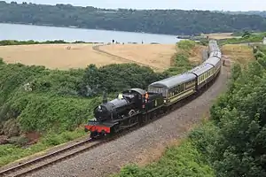The Dartmouth Steam Railway, formerly known as the Paignton and Dartmouth Steam Railway, is a 6.7-mile (10.8 km) heritage railway on the former Great Western Railway branch line between Paignton and Kingswear in Devon, England. Much of the railway's business is from summer tourists from the resorts of Torbay, who travel to Kingswear, where the Dartmouth Passenger Ferry takes them across the River Dart to Dartmouth.