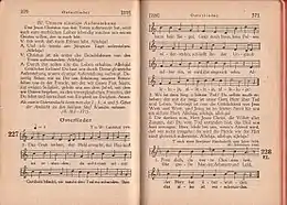 A hymnal appeared in Landshut in 1777, with the full title Der heilige Gesang zum Gottesdienste in der römisch-katholischen Kirche (The holy chant for the divine service in the Roman Catholic Church),[2][3] containing prayers and hymns in German for the church services and private contemplation. Franz Seraph von Kohlbrenner was the editor for the texts, Norbert Hauner for the musical part. The book offers no names of authors. It is assumed that Kohlbrenner and Hauner are the authors of all new songs in the hymnal.[3][4]