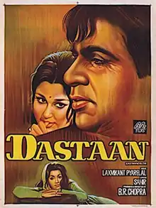 Dastaan (lit.'The Tale') is a 1972 thriller film produced and directed by B. R. Chopra. The film stars Dilip Kumar, Sharmila Tagore, Bindu, Prem Chopra, Iftekhar, I. S. Johar and Madan Puri. The film's music is by Laxmikant-Pyarelal. Dastaan was a commercial failure and Dilip Kumar's first outright flop in 6 years since Dil Diya Dard Liya (1966).[1] This movie is based on director's own 1951 film named Afsana, starring Ashok Kumar in leading role.