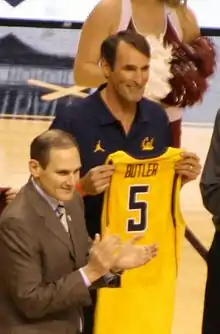 At the University of California, Berkeley, Butler began his career as the Pac-10 Freshman of the Year in 1983.[3] Under first-year coach Lou Campanelli, the Bears qualified for the 1986 NIT, the school's first postseason appearance since 1960. Butler led the team that season in rebounding with 7.9 per game, and was second in scoring (11.8) behind Kevin Johnson.[2] Earlier that season on January 25, 1986, Butler had 23 points and 10 rebounds in one of the best games in his career, as the Bears won 75–67 to snap a 52-game losing streak to the UCLA Bruins.[4]