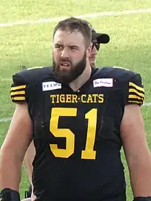 In 2019, he was the unanimous selection for the Edmonton Eskimos' Most Outstanding Offensive Lineman.[5] He re-signed with Edmonton on a contract extension through 2023 on December 26, 2020.[6] He played in 94 games for Edmonton over seven seasons.