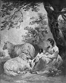 David Brown, A Shepherdess with Sheep, 1790s. Oil on canvas, 15 1/2 x 12 in., unlocated