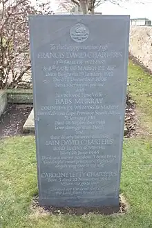 Francis David Charteris, 12th Earl of Wemyss and 8th Earl of March KT DL (19 January 1912 12 December 2008), styled Lord Elcho from 1916 to 1937, was a Scottish peer, landowner and conservationist. From 1946 to 1991, he served as chairman and then president of the National Trust for Scotland.[1]
