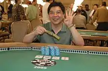 ![]() Chiu winning an event at the 2005 World Series of Poker | |