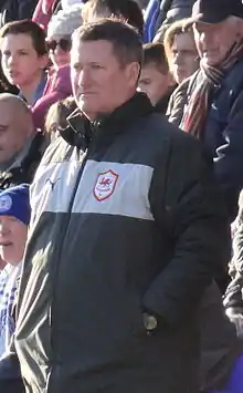 He was appointed first-team coach at Watford, but on 30 June 2011 was announced the new coach of Cardiff City, working as assistant manager to Malky Mackay.[3] Following the sacking of Mackay in December 2013, Kerslake and Joe McBride were placed in charge of the first team.[4] They were in charge until 2 January 2014, when Ole Gunnar Solskjaer was appointed as the new Cardiff City manager.[5]
