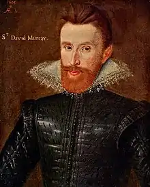 David was educated at St Salvator's College at St Andrews University, but did not graduate as Master of Arts. Before James VI of Scotland became King of England, David Murray was a servant of Prince Henry at Stirling Castle.[3] Murray went to the Netherlands in September 1600 carrying a letter of recommendation from his six-year-old master.[4] His yearly fee of 600 marks Scots as a Gentleman of the Prince's Bedchamber was fixed 30 June 1602, by the order of the Privy Council of Scotland.[5]
