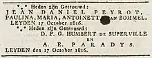 Marriage announcement in the Leydse Courant, 17 October 1816