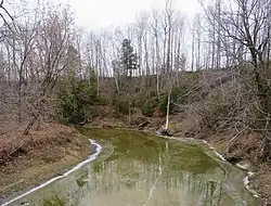 • 3.1 kilometres (1.9 mi) (or 1.6 kilometres (0.99 mi) in a direct line) winding up to the Sainte-Cardine stream (coming from the west);