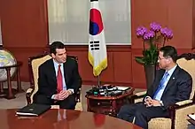 Cohen (left) in Seoul with Republic of Korea First Vice Minister of Foreign Affairs Kim Kyou-hyun in 2013