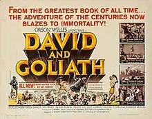 David and Goliath (Italian: David e Golia) is a 1960 Italian film directed by Ferdinando Baldi and Richard Pottier with sequences filmed in Israel and Yugoslavia.