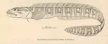 - ↑ Christopher Scharpf & Kenneth J. Lazara, eds. (6 May 2022). "Order Perciformes Suborder Cottoidea: Infraorder Zoarcales: Family: Zoarcidae". The ETYFish Project Fish Name Etymology Database. Christopher Scharpf and Kenneth J. Lazara. Retrieved 5 October 2022.