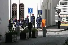 The following day another man, Fadhel Al-Matrook, was killed by police during the funeral of Mushaima.[77] Protesters then marched and occupied the Pearl Roundabout without police interference.[2]: 71 Thousands continued camping at the site for another day.[78] On 17 February, in what became known as Bloody Thursday,[79][80][81] authorities launched a pre-dawn raid and cleared the site, killing four protesters and injuring hundreds.[2]: 230–2 [82][83] Protesters took refuge in Salmaniya Medical Complex where many of them demanded the fall of the regime.[84][85][86] Defying the government ban on gatherings,[87] on the evening of 18 February, hundreds of protesters marched toward the Pearl Roundabout, now under the control of the army.[88] When protesters neared the site, the army opened fire, killing Abdulredha Buhmaid and injuring dozens of others.[89][90]