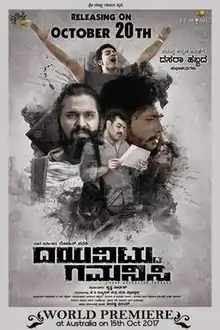 Dayavittu Gamanisi (transl. Your attention please!) is a 2017 Indian Kannada-language satirical film written, directed by Rohit Padaki, making his debut in direction.[1] Krishna Sarthak is the main producer. It stars an ensemble cast including Raghu Mukherjee, Samyukta Hornad, Sukrutha Wagle, Vasishta N. Simha, Prakash Belawadi, Rajesh Nataranga, Bhavana Rao, Sangeetha Bhat.[2] The film score and soundtrack for the film are composed by Anoop Seelin, and the cinematography was handled by Aravind Kashyap. It was nominated for the Filmfare Award for Best Film – Kannada at the 65th Filmfare Awards South.