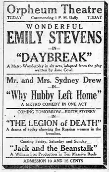 Daybreak is a 1918 American silent drama film directed by Albert Capellani. The film is considered to be lost.[1][2][3]