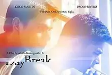 Daybreak (Filipino: Bukang-liwayway, English: dawn or twilight) is a 2008 Philippine gay indie film written by Charliebebs Gohetia and directed by the Manila-based Filipino director Adolfo Borinaga Alix, Jr. who also directed other indie films such as Donsol, Kadin and GMA Films' movie Batanes: Sa Dulo Ng Walang Hanggan. The movie features only two characters, Coco Martin (as JP) and Paolo Rivero (as William) who are both Filipino actors. The film is homosexual in terms of theme but was rated R-18 uncut, regardless of its nudity features by the Movie and Television Review and Classification Board (MTRCB) in the Philippines as most of the members of the board were impressed by the cinematography and intelligence of the film. Daybreak had its exclusive screenings on February 13 and 14, 2008 at the Cine Adarna of the University of the Philippines Film Institute. The movie was officially released and aired in major Philippine cinemas from February 20 to March 11, 2008. Daybreak is produced by Bicycle Productions.