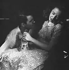 Mr. Miller reveals that the idea for the play came to him one sleepless night when "I got to thinking about an uncle of mine who was a drunk." He settled on two young people who like to drink and then "fall in love with the bottle more than each other."... As Mr. Robertson observes with admirable detachment, it is raw and imperfect but "it was emotionally honest." Using the framework of an Alcoholics Anonymous meeting, Joe gets up to address the gathering and his story is told in flashbacks that begin 10 years earlier. He meets Kirsten (Miss Laurie) at a business cocktail party. He is a young advertising executive. She is a bright secretary whose self-improvement activities have reached the point of her reading the poetry of Edna St. Vincent Millay. The drinking gets serious early on, and gradually their lives dissolve in puddles of cheap liquor. Her father (Mr. Bickford) tries to help, but the process has gone too far for mere sympathy to help... Several of the scenes remain searing.[3]