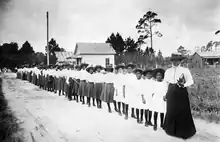 Mary McLeod Bethune with a line of girls from the school in 1905