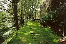 Dduallt was the starting point for the Ffestiniog Railway Deviation, the 2.5 miles (4.0 km) diversionary route built between 1965 and 1978 to bypass the Ffestiniog Power Station pumped-storage hydroelectric power station, one of two pumped-storage schemes in Wales, and its lower reservoir (Llyn Ystradau). The Deviation (this is the conventional name for such railway works) was built mostly by volunteers and involved a 310 yards (280 m) long new tunnel constructed by three Cornish tin mining engineers (and some employees) between 1975 and 1977. At the southern end is the spectacular Dduallt spiral formation constructed with its bridge entirely by volunteers to gain an initial height rise of 35 feet (11 m) in order (after a further mile of the new railway and the new tunnel) to clear the flooded track bed north of the former tunnel. Parts of the trackless former route can be clearly seen below the new route, particularly just north of Dduallt. The old tunnel is plugged near its northern end, which is usually underwater. Some delicate engineering work was required where the new line passes over the power station pipelines.