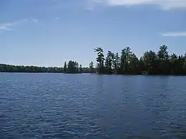 Deer Island Lake is a lake located in Gogebic County in the U.S. state of Michigan. The Lake is one of about 24 clear, clean lakes located in a special wilderness area known as the Sylvania Wilderness, which in turn is located within the Ottawa National Forest a few miles (6 to 8 km) to the west of the town of Watersmeet. The shoreline is completely undeveloped, and surrounded by virgin forest consisting mainly of hemlock and pine. This crystal-clear spring-fed lake is one of the most remote in the Sylvania Tract, but is well worth the journey for those intrepid enough to make it. The total surface area of the lake is 346 acres (1.4 km2), with maximum depths of 55 ft (17 m). The lake is named for the very large island in the center of the lake, which deer inhabit by crossing back and forth on the ice in winter. Several smaller islands and numerous rocky shoals add to the overall beauty of this fine body of water.