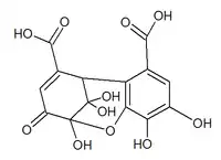 Dehydrohexahydroxydiphenic acid is a group found in dehydroellagitannins. It is formed from hexahydroxydiphenic acid (HHDP) through oxidation of the plant hydrolysable tannins.[1] It is found in ellagitannins such as euphorbin A, geraniin or mallotusinic acid.